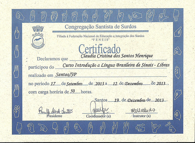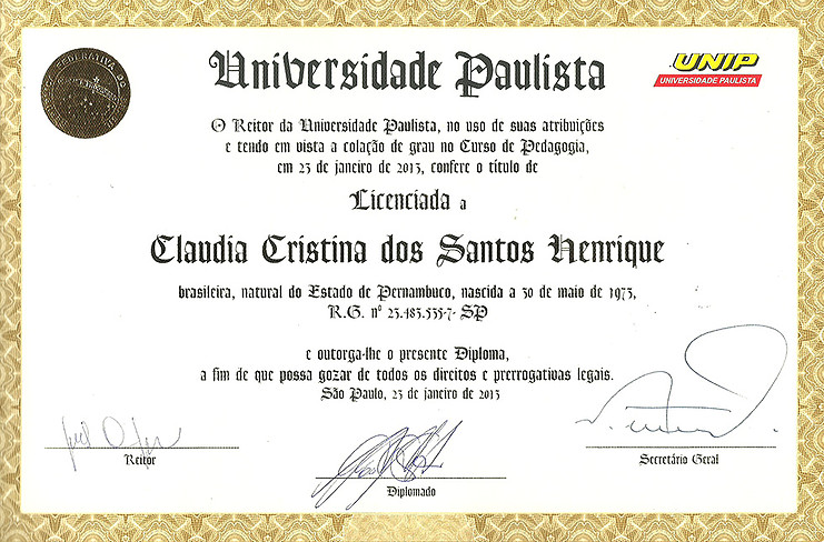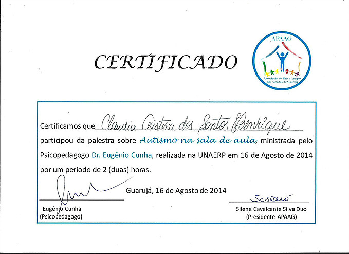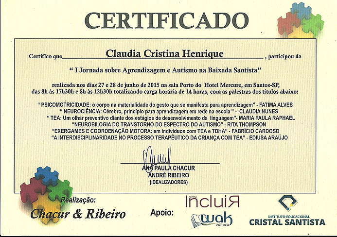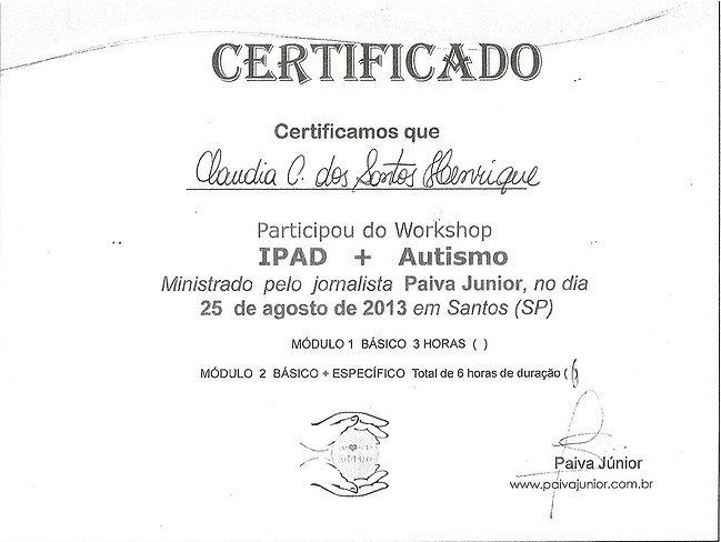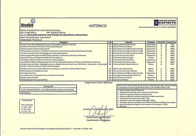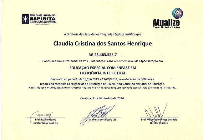 - Educação especial com ênfase em deficiência intelectual. Concluído em 2014.
